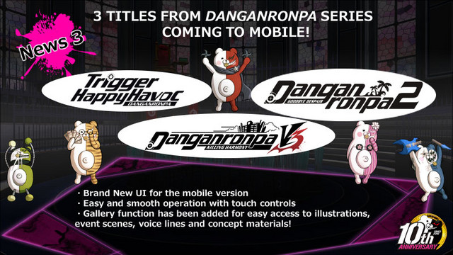 Tenemos buenas noticias para los fans de Danganronpa que viven fuera de Japón, Spike Chunsoft confirmó que gran parte de los videojuegos que se lanzarán tambien saldran en occidente. Esta confirmación forma parte de un plan para convertir esta celebración en un evento internacional.