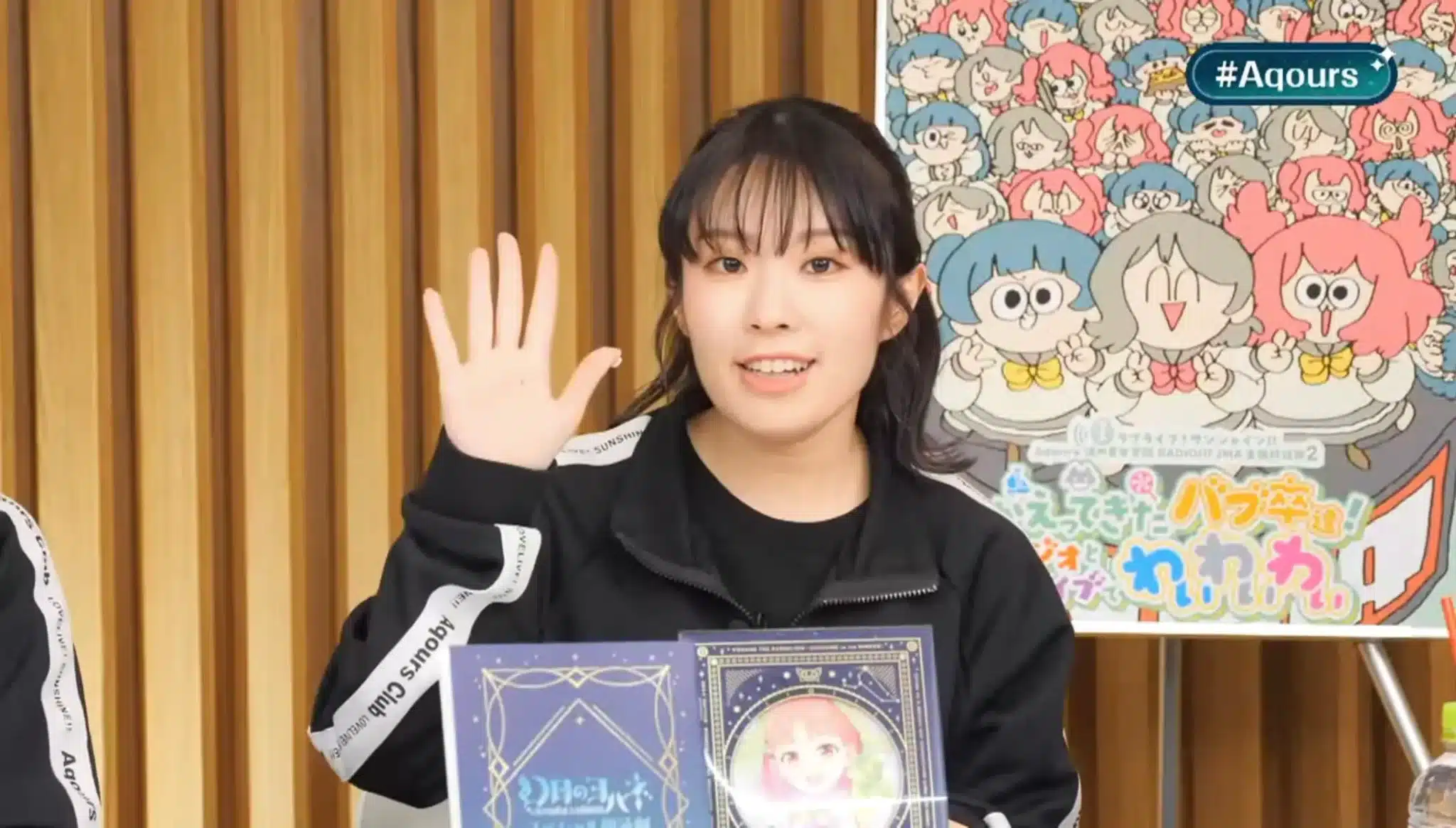 Así mismo, otra de las personas que se encontraba en la transmisión era Aika Kobayashi quien presta su voz para el lindo personaje Yoshiko Tsushima de Love Live! Sunshine!!, en la transmisión en vivo ocurrió un pequeño accidente que causó mucha diversión a los espectadores, se encontraba Rikako Aida con su compañera armando la figura del personaje Yoshiko Tsushima cuando de repente de rompió un brazo, las chicas en ese momento empezaron a reír e Aida intentó colocar la pieza en su lugar sin mucho éxito.
