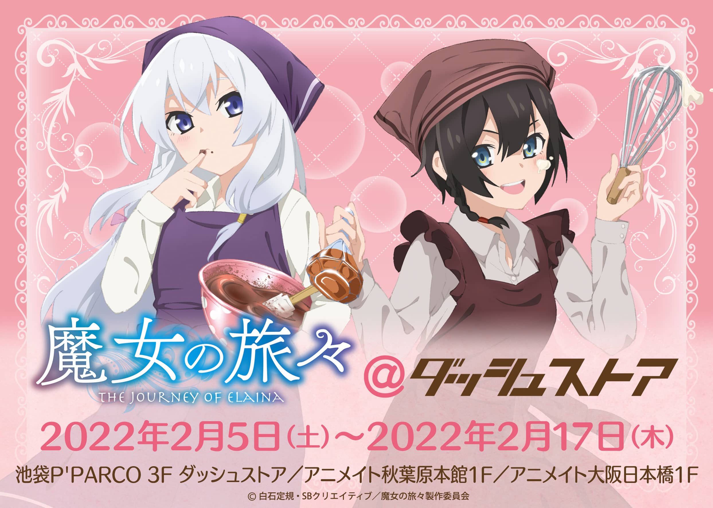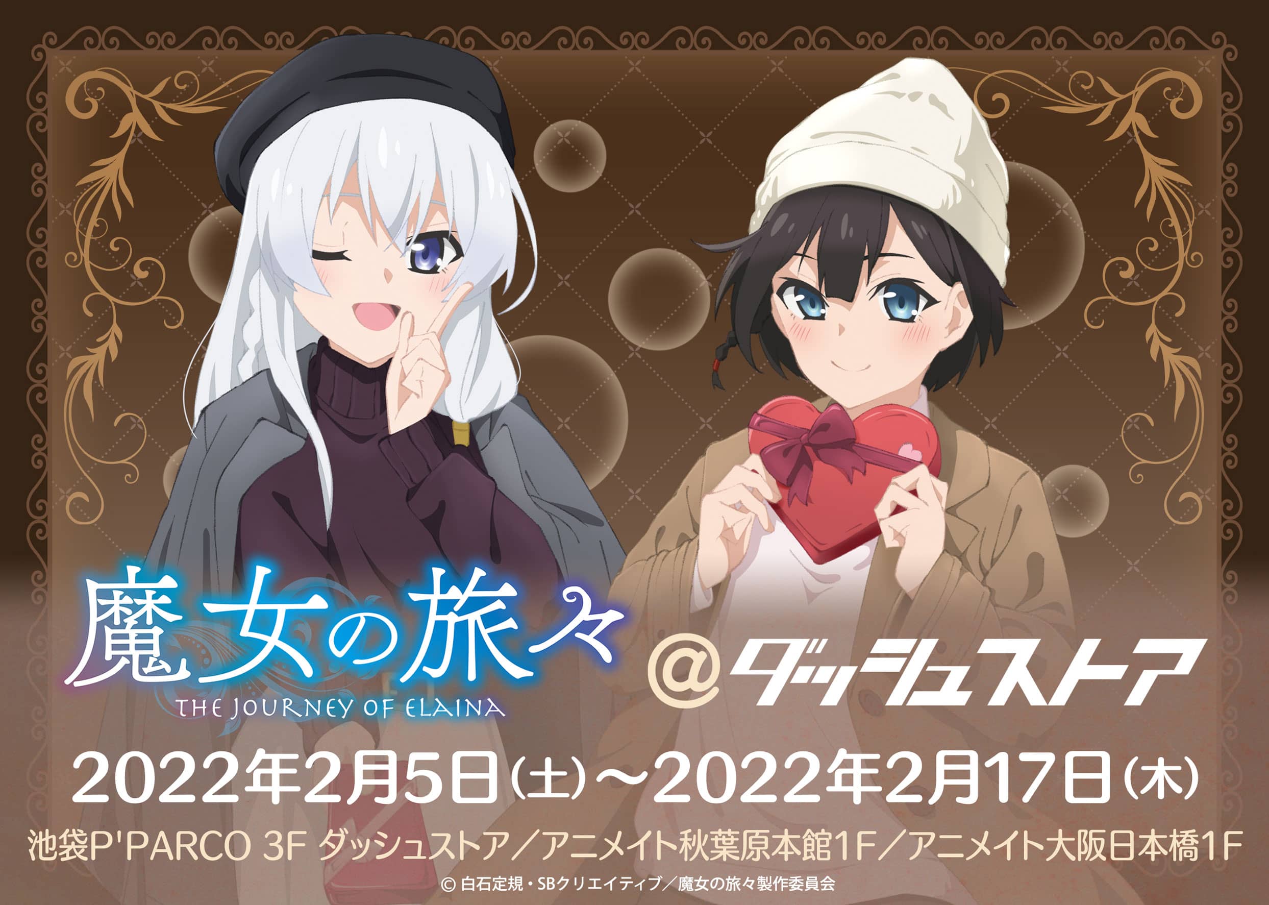 En el sitio web oficial de la tienda «The Dash» se anunció una colaboración de temática de San Valentín con el anime Majo no Tabitabi (Wandering Witch: The Journey of Elaina), el cual consistirá en diferentes productos inspirados en los personajes Elaina y Saya. De manera adicional, se han publicado 2 imágenes promocionales para la colaboración.