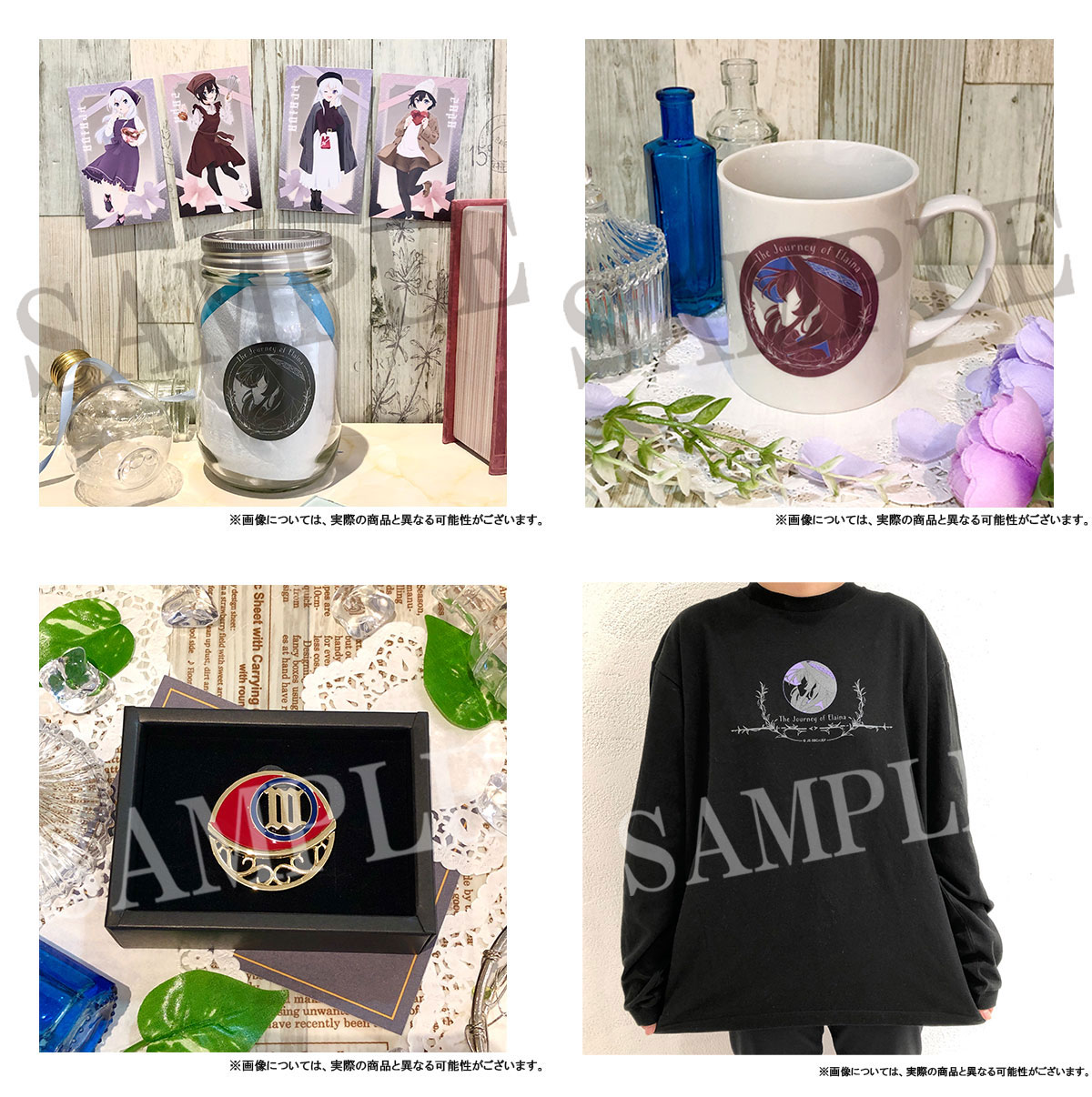 Esta colaboración entre la tienda «The Dash» y el anime Majo no Tabitabi estará disponible a partir del 5 al 17 de febrero de este año, y como se mencionó anteriormente, se exhibirán diferentes productos inspirados en las imágenes promocionales que son protagonizadas por Elaina y Saya. Algunos de los productos son los siguientes: