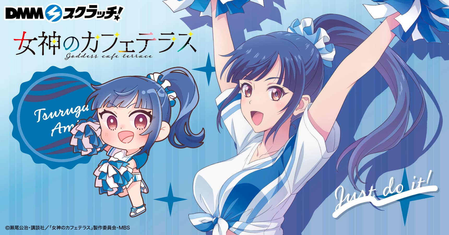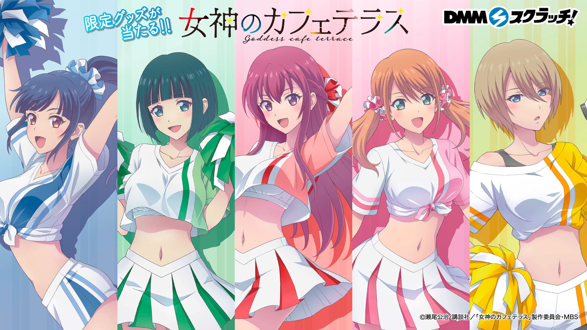 La serie de anime basada en el manga «Megami no Café Terrace» (The Café Terrace and Its Goddesses) anunció una colaboración con la compañia DMM Scratch que consistirá en la producción de unos productos inspirados en los personajes Ouka Makuzawa, Akane Hououji, Riho Tsukishima, Ami Tsuruga y Shiragiku Ono.