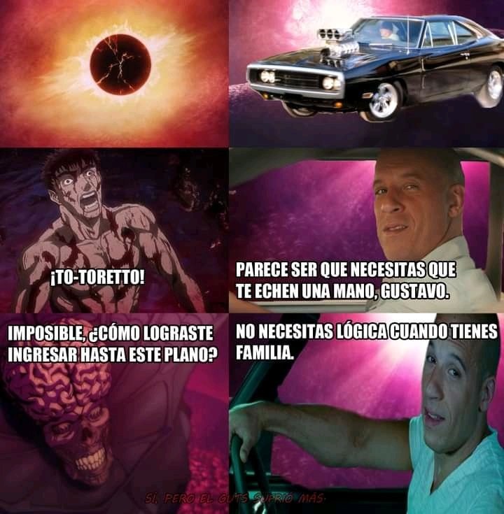 El los รบltimos dรญas hemos visto una lluvia de memes relacionados a la icรณnica frase de Vin Diesel en la franquicia de Rรกpidos y Furiosos, la cual es ยซLa Familiaยซ. Por lo que miles de fans han compartido cientos de memes que ponen al famoso actor en situaciones muy alocadas, las cuales incluyen escenas de anime.