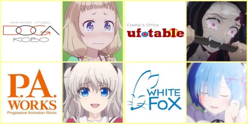 La siguiente imagen comparativa nos muestra las diferencias que existen entre los siguientes estudios de anime: Dogakobo, Ufotable, PA Works y White Fox.