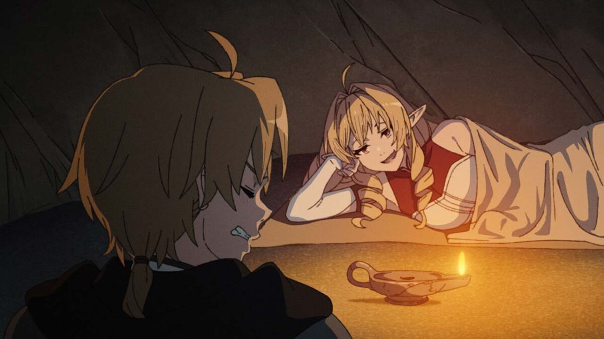 Pero toda esta polémica surgió con el último capítulo de Mushoku Tensei, puesto que se le puede ver a Rudeus y a Elinalise acampando juntos a la intemperie. Cuando de repente Elinalise sale de la carpa para “cazar hombres” dando a suponer lo que venía, con el fin de mantener la maldición que la aflige a raya, por el hecho de que al encontrarse lejos de Cliff y al no querer usar a Rudeus, busca a una persona cualquiera para tener relaciones.