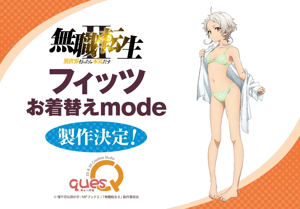 Aprovechando la enorme repercusión que la franquicia multimedia «Mushoku Tensei: Jobless Reincarnation» (Mushoku Tensei: Isekai Ittara Honki Dasu) ha tenido con el anuncio de la fecha de estreno de la segunda parte para la segunda temporada de la serie, la compañia QuesQ decidió presentar su nueva colaboración con el anime televisivo.
