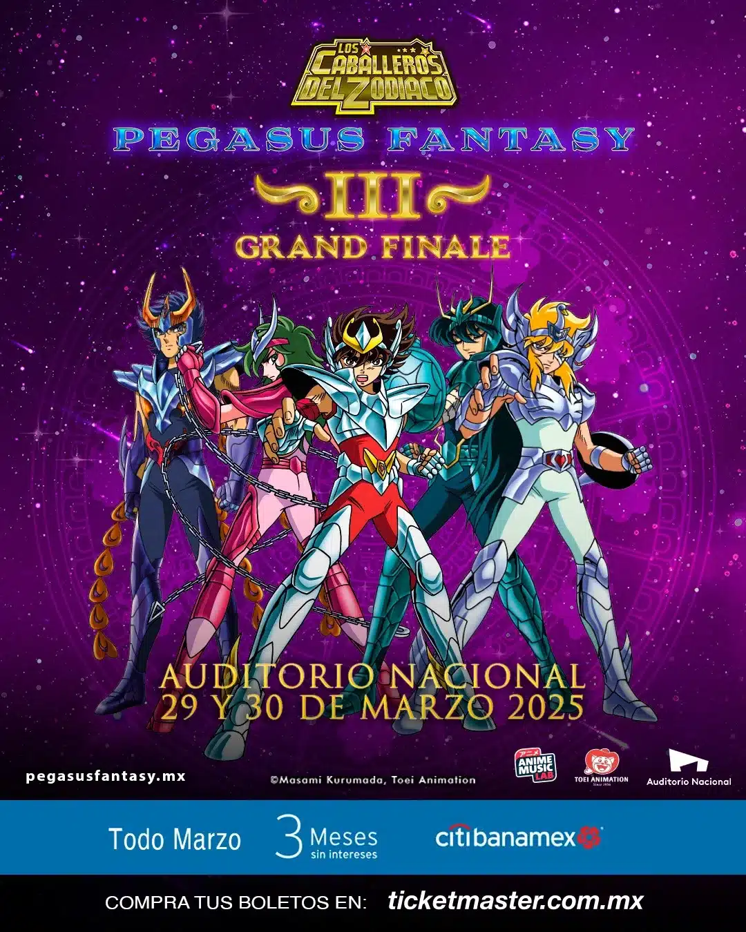 La cuenta regresiva ha comenzado para el épico final de «Pegasus Fantasy«, el concierto sinfónico oficial de «Los Caballeros del Zodiaco«. Bajo el título «Pegasus Fantasy III: Grand Finale«, este magno evento se llevará a cabo en el imponente Auditorio Nacional los próximos 29 y 30 de marzo de 2025. Los fanáticos del legendario anime podrán disfrutar de una experiencia musical inigualable, que rendirá homenaje a la icónica banda sonora de la serie.