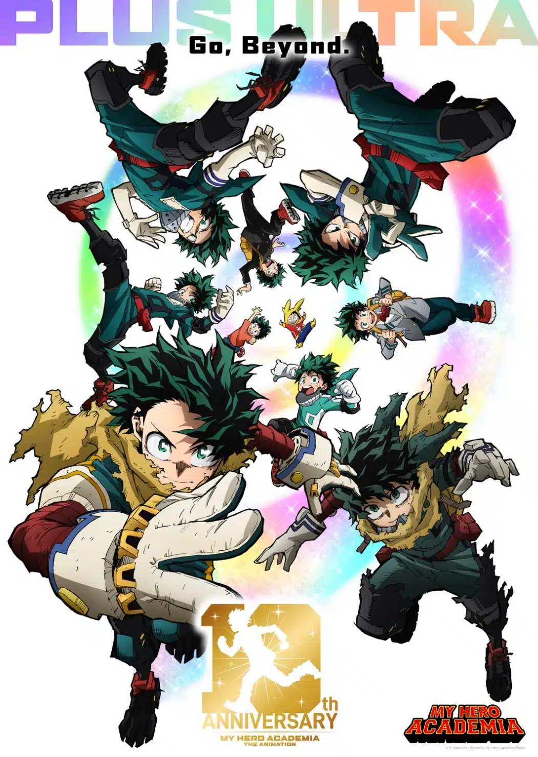 Adicionalmente, se presentó al público una imagen visual para el décimo aniversario del anime My Hero Academia. La visual presenta la evolución y desarrollo del protagonista Izuku Midoriya a lo largo de la serie, empezando como un bebe, niño, estudiante, principiante, hasta llegar al héroe que vimos en la última temporada.