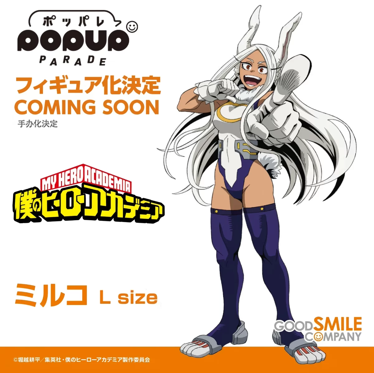 Aprovechando la emisión de la séptima temporada de la adaptación al anime del manga My Hero Academia (Boku no Hero Academia), la reconocida compañía japonesa Good Smile Company ha decidido anunciar una nueva colaboración con la franquicia. Esta noticia se dio a conocer a través de los medios oficiales de la compañía Good Smile Company y, para sorpresa de las personas que desde el primer momento se vieron cautivadas por la heroína profesional «Rabbit Hero: Mirko» (Rumi Usagiyama), la colaboración la tendrá a ella como la cara principal.
