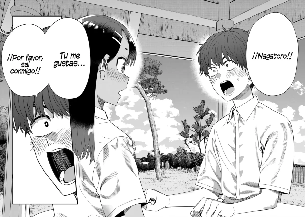 El lugar indicado para esta emocionante escena fue una playa y luego de expresarle su agradecimiento por como Nagatoro le ha cambiado la vida, dรกndole un brillo donde antes solo era gris, el decide lanzar la frase que todos querรญan leer: ยซNagatoro, tu me gustas… ยกPor favor, sal conmigo!ยซ