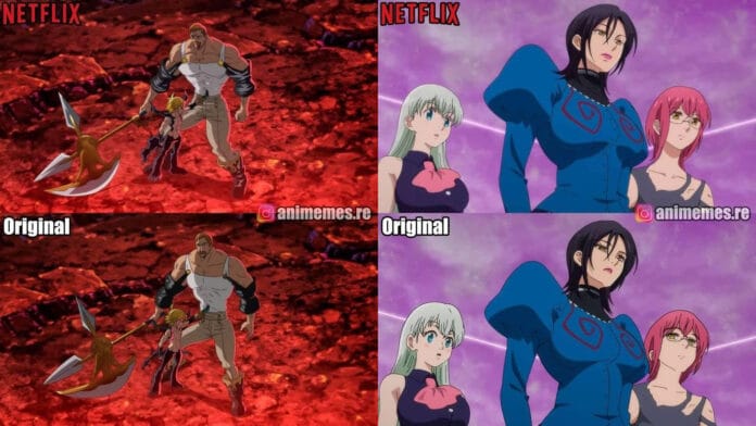 Pues la pagina de instagram Animemes.re Publico una comparativa de como se vio el episodio 12 del anime cuando estaba en emisión, a la versión actual de Netflix: