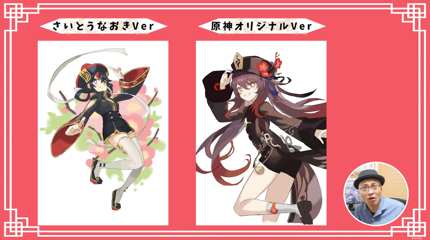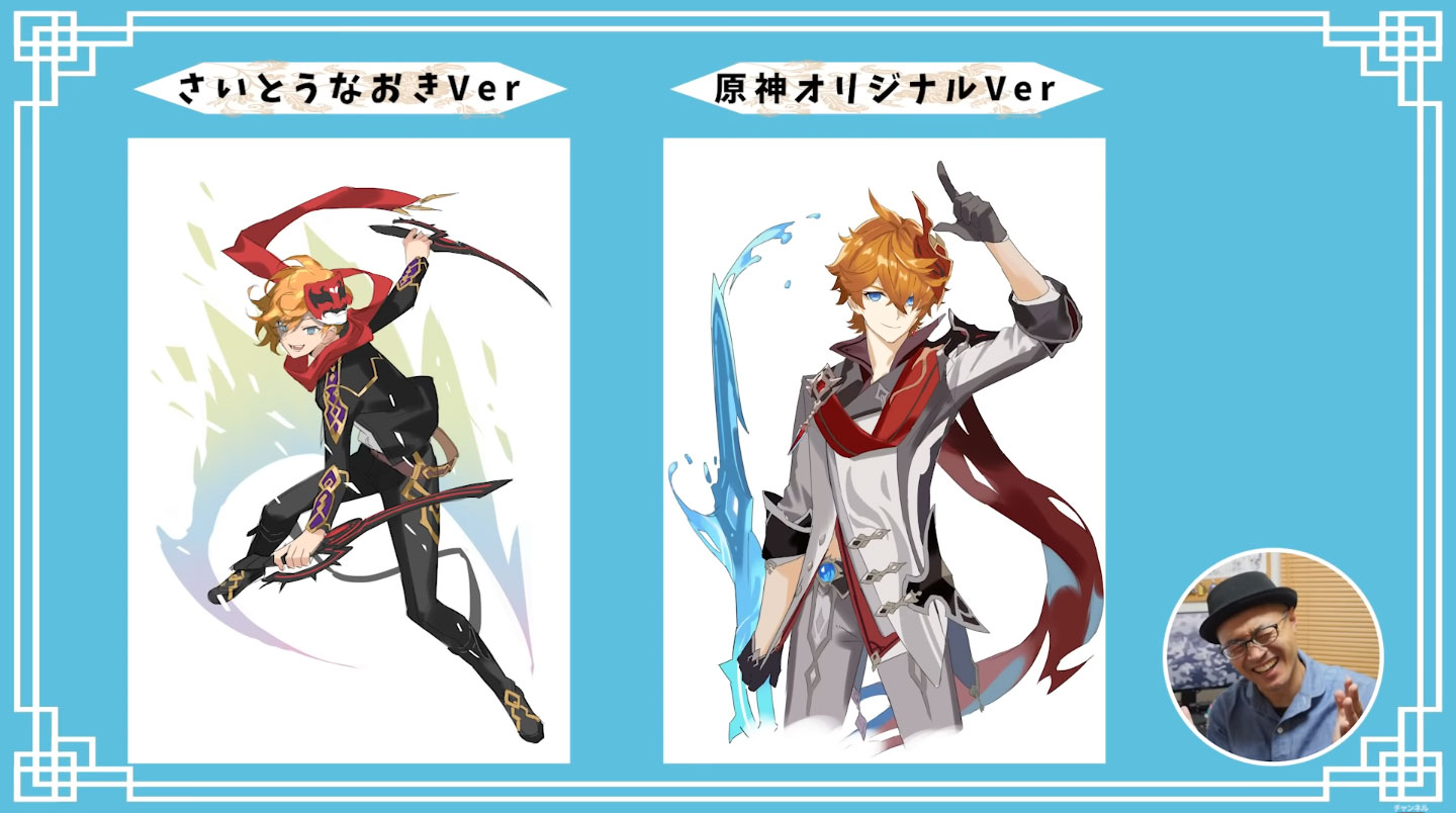 Empezando con el vídeo del videojuego desarrollado por miHoYo, Genshin Impact, Naoki realizó unas ilustraciones de los personajes Zhongli, Tartaglia y Hu Tao, en donde teniendo en mente la descripción recibida, no está tan lejos de la versión oficial de Genshin Impact.