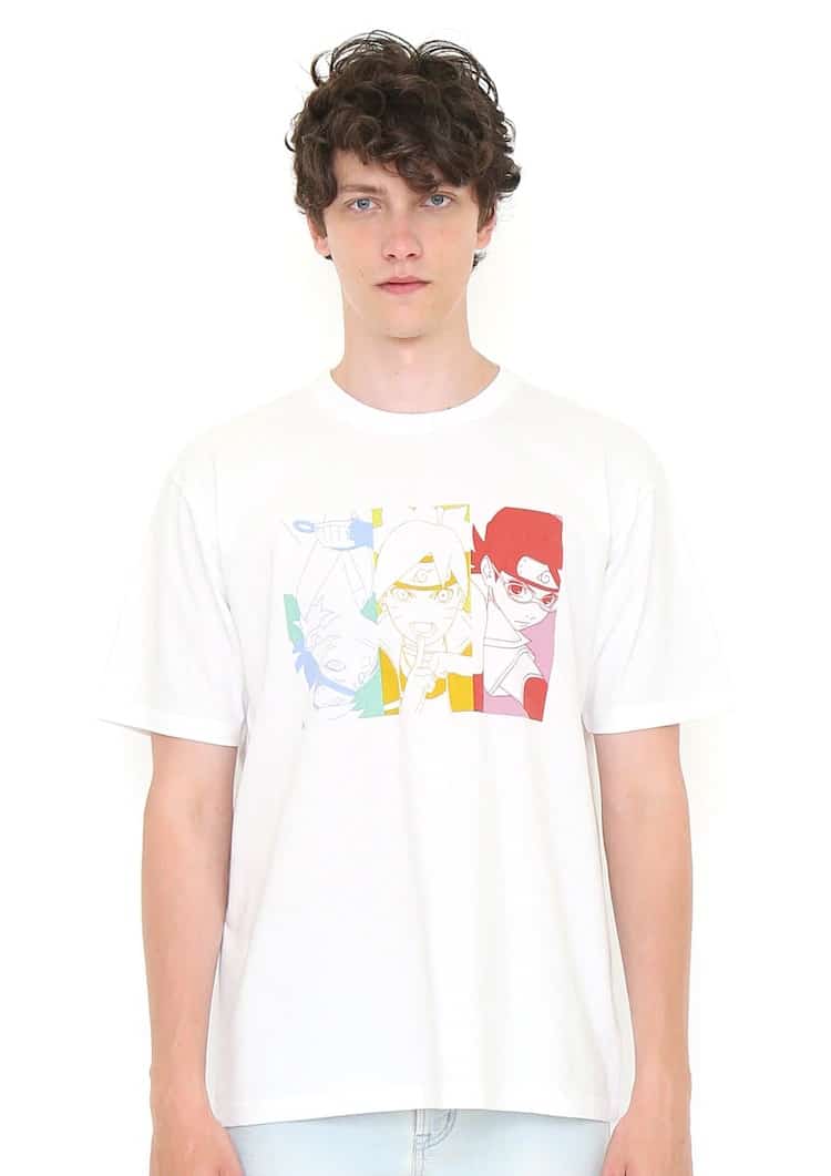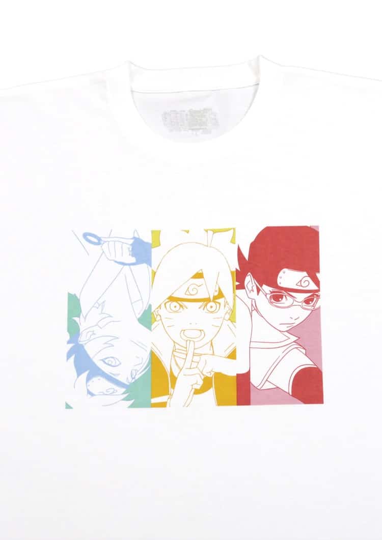 - Por último, el tercer diseño muestra a Mitsuki, Boruto y Sarada con los colores que representan a cada personaje.