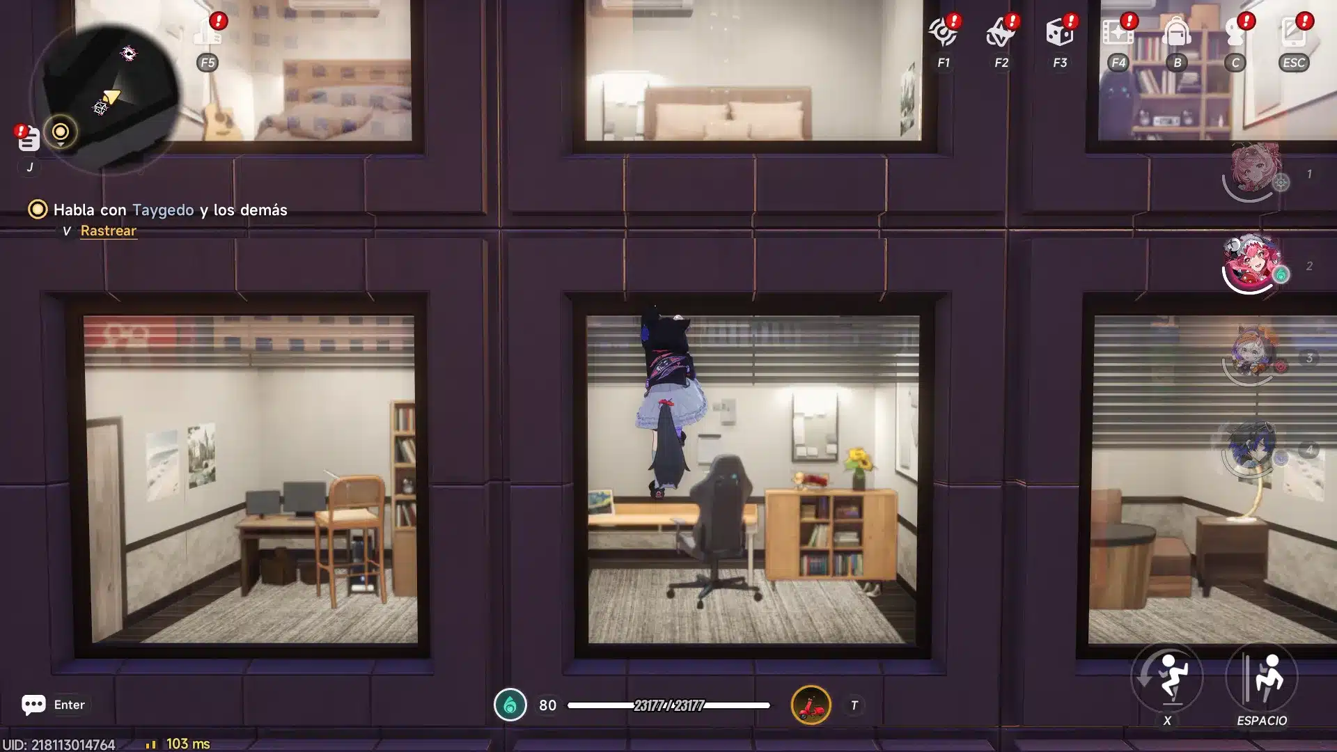 Entre las actividades más destacadas, está la gestión del Café by Origen, donde puedes asignar a tus Espers como empleados, mejorar el local y generar ingresos pasivos. También es posible comprar y decorar apartamentos que otorgan buffs y recursos semanales. Actividades como el Pink Paws Heist y el Hunter Exchange permiten obtener grandes cantidades de Fons y materiales premium o incluso participar en carreras callejeras.