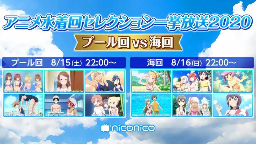 Además, por cuarto año consecutivo, Niconico realizará su evento anual de anime con trajes de baño. pudiendo observarse escenas de animes como Toradora!, Eromanga Sensei, BOKUBEN y más. Este año las escenas fueron dividas en «piscina» y «playa». Los capítulos de «piscina» serán exhibidos en agosto 15, seguida de los capítulos de «playa» en agosto 16.