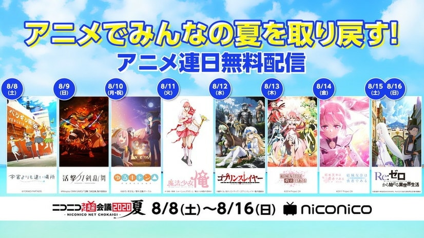 El sitio japonés de streaming Niconico anunció un evento de verano dedicado a los fans del anime, como reemplazo de la edición cancelada de este año del evento Niconico Chokaigi. Motivo por el que se realizará un maratón de anime que celebrará lo mejor del verano con episodios en la playa, piscinas y waifus en traje de baño.