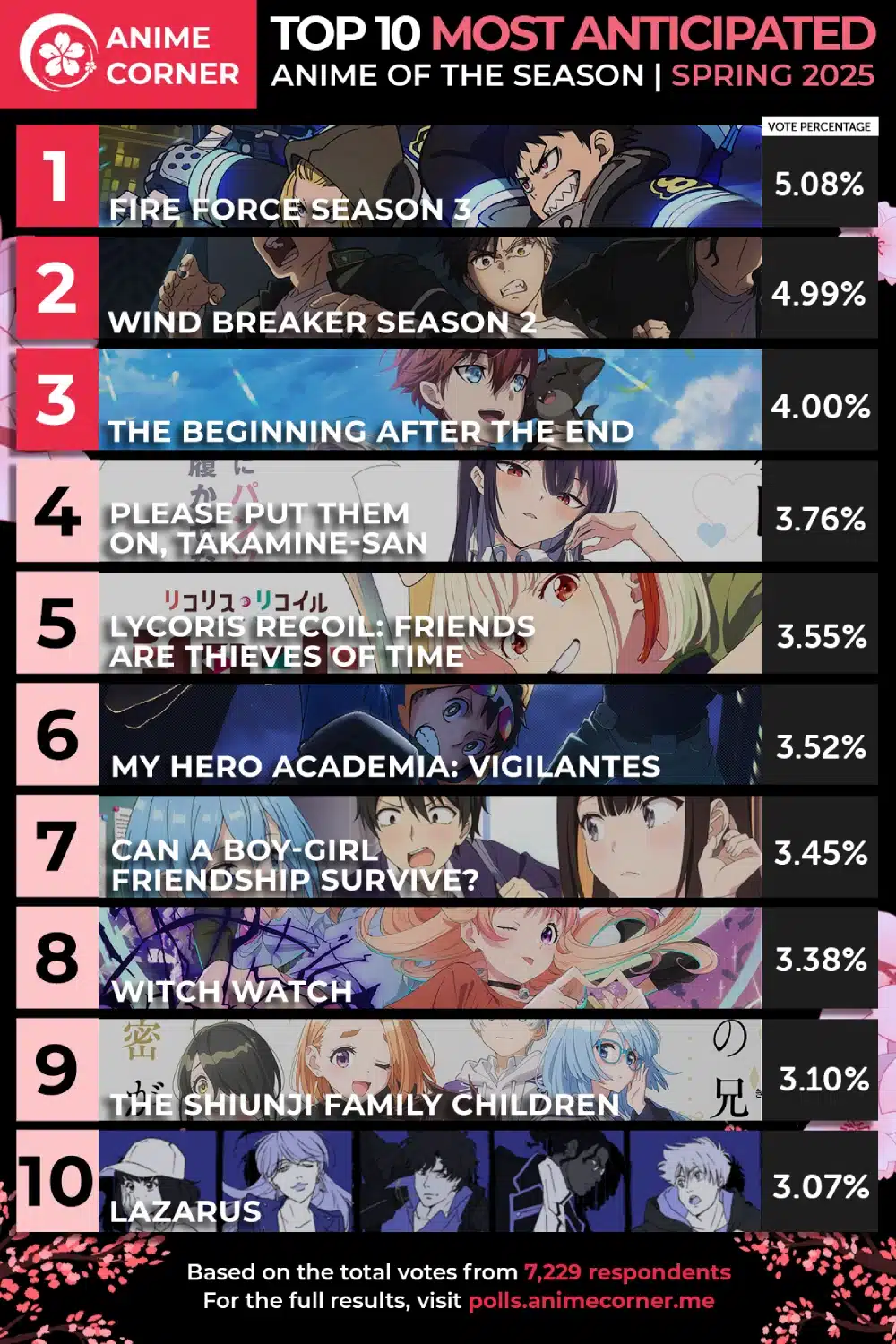 los resultados del ranking de Anime Corner ya están aquí, la lista incluye 65 series anime en total, pero hoy nos enfocaremos en los 10 más votados, aquellos que han generado mayor expectativa entre la audiencia, desde secuelas muy esperadas hasta nuevas apuestas. Estos son los títulos que lideran la temporada, cabe destacar que este listado está basado en la opinión de la comunidad y no debería dictar qué anime ver, cada anime tiene su propio atractivo, y la popularidad inicial no siempre determina el éxito final. A veces, una serie poco esperada puede sorprender a la audiencia y convertirse en un éxito inesperado.
