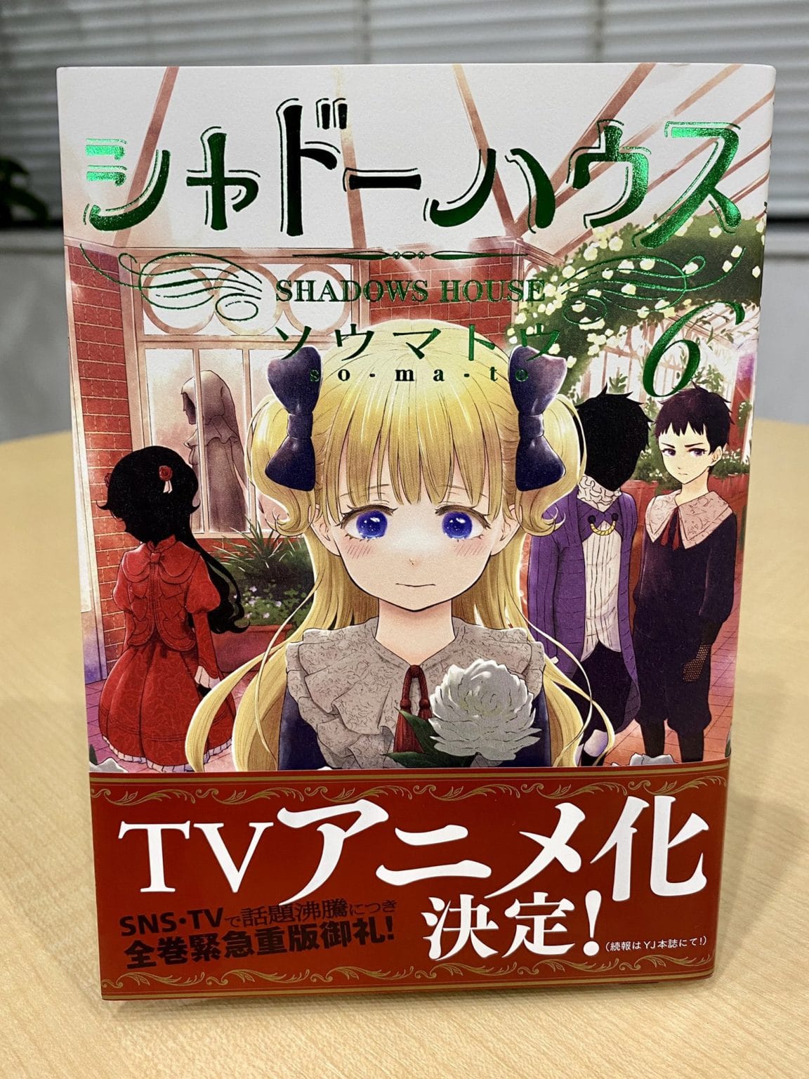 El sexto volumen del libro compilado del manga Shadows House del equipo creador de dos personas So-ma-to reveló que la serie tendrá una adaptación al anime. El dúo de mangakas también publicó un gif para conemorar el anuncio.