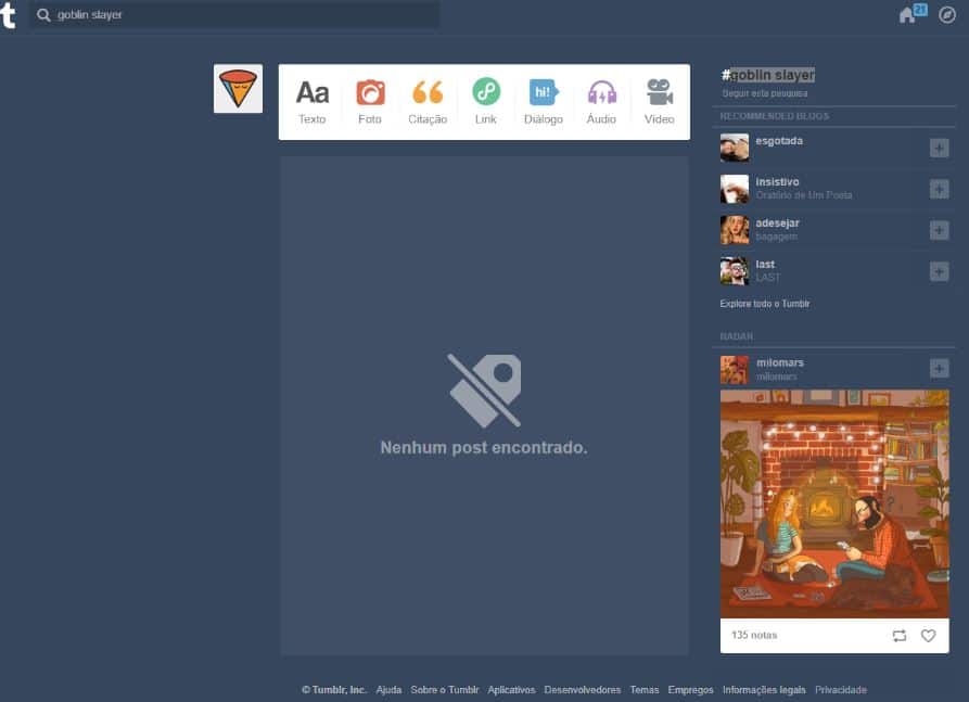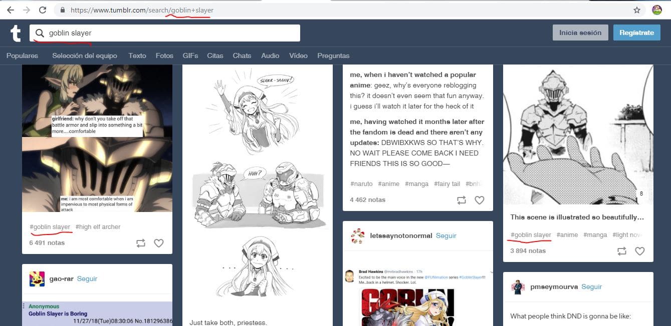 Te invitamos a hacer la búsqueda por ti mismo dando click en el siguiente enlace https://www.tumblr.com/search/goblin+slayer.