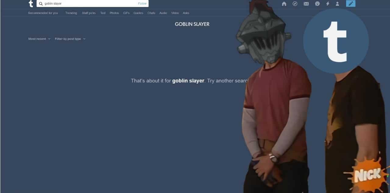 Ahora la nueva Fake News es que la red social Tumblr dedicada al mundo de las fotografías e imágenes acaba de borrar todo contenido con relación a la etiqueta Goblin Slayer.