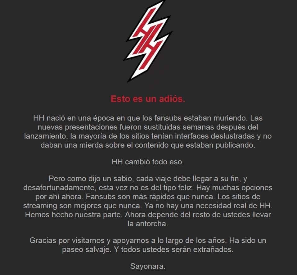 Una carta de despedida y agradecimiento por parte del staff que conforma HHaven. Parecía todo claro que ya todo estaba perdido pero hace unos instantes se actualizo el sitio web y revelo un mensaje en la que afirmaba su regreso.