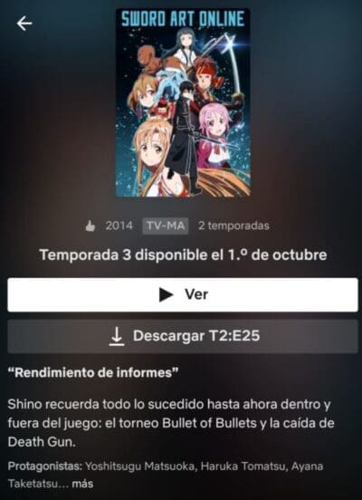 Usuarios han reportado que aparece listada la tercera temporada de Sword Art Online, titulada Sword Art Online: Alicization, para estrenarse Netflix el 1 de octubre.
