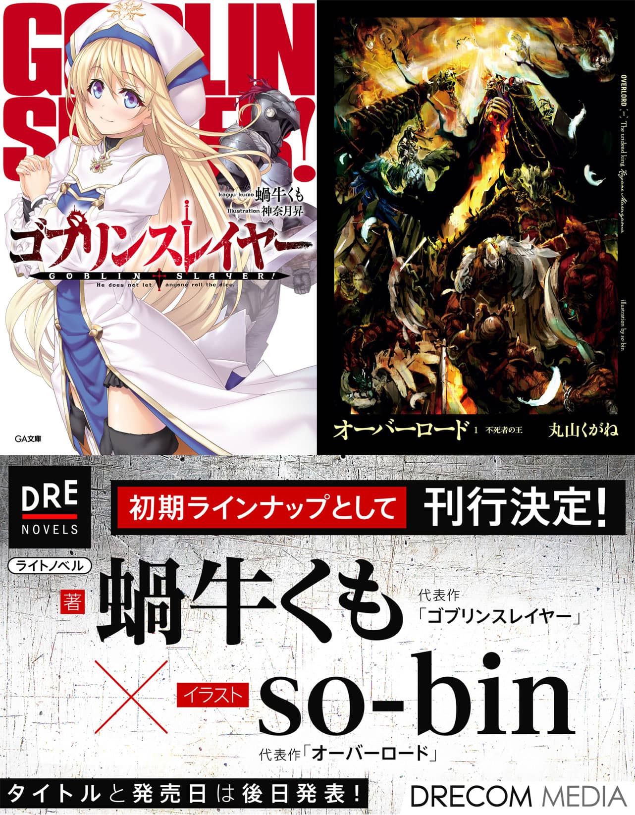 La editorial Drecom Media anunciรณ la apertura de ยซDRE Novelsยซ, su nuevo sello editorial que estรก empezando a dar sus primeros pasos, y para mantener a los fanรกticos con una alta expectativa de lo que podrรก ofrecer en un futuro, se confirmรณ que Kumo Kagyuu (autor de Goblin Slayer) y so-bin (ilustrador de Overlord) se unirรกn para crear una novela ligera.
