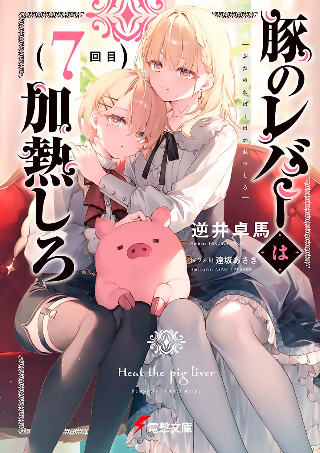 El sello editorial Dengeki Bunko reveló la portada oficial para el séptimo volumen de la novela ligera «Buta no Liver wa Kanetsu Shiro» (Heat the Pig Liver: The Story of a Man Turned Into a Pig) y confirmó que se lanzará a la venta en las tiendas de Japón el próximo 9 de diciembre. Además, este volumen estará disponible bajo un precio de 728 yenes y contendrá un total de 328 páginas.
