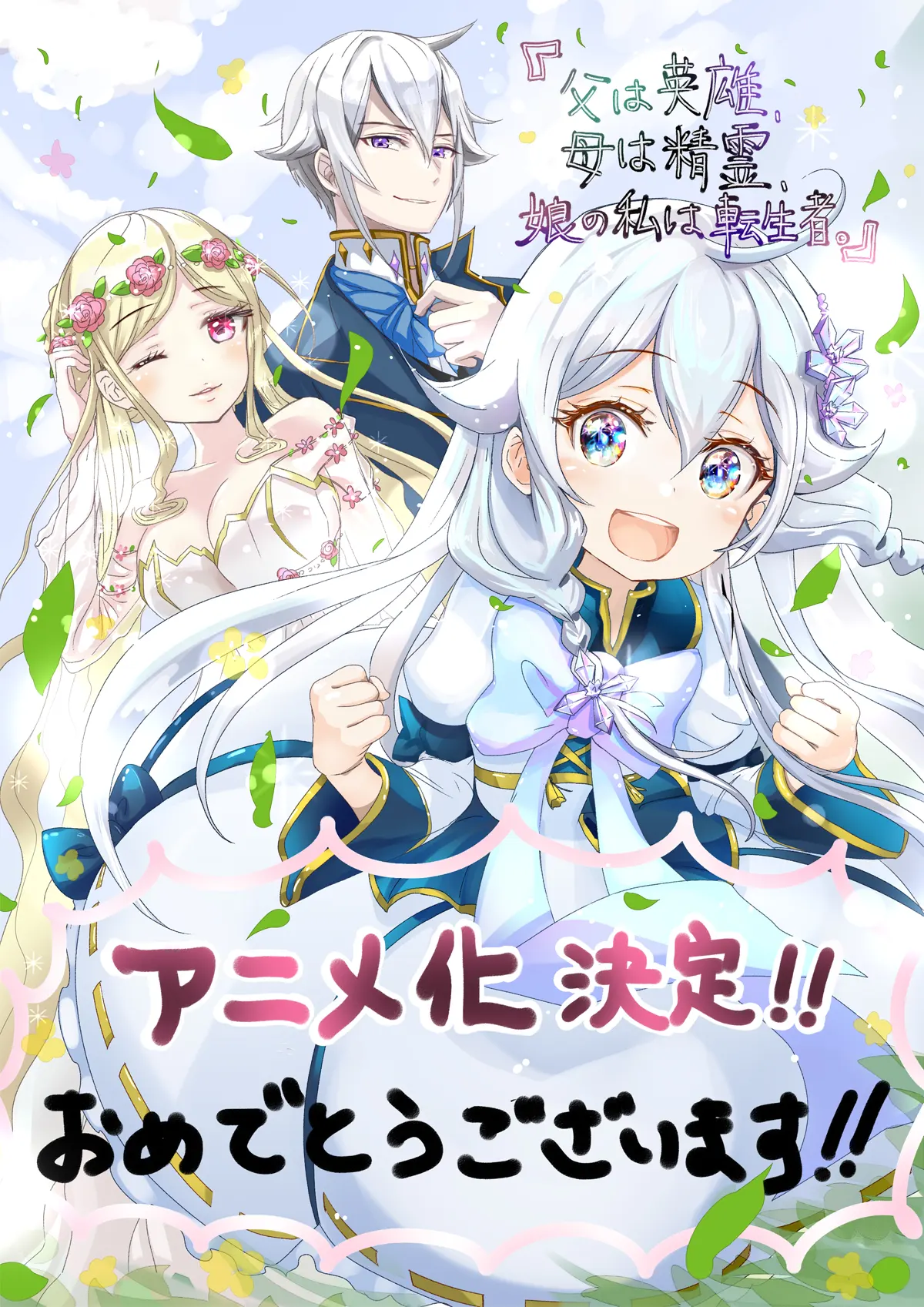 En los medios oficiales de la adaptaciรณn al anime de la novela ligera Chichi wa Eiyuu, Haha wa Seirei, Musume no Watashi wa Tenseisha se han revelado nuevas actualizaciones sobre la serie. Entre ellas, se destaca la publicaciรณn de la primera imagen promocional del anime, el cual es protagonizada por los personajes Ellen, Origin y Rovel Vankreift.