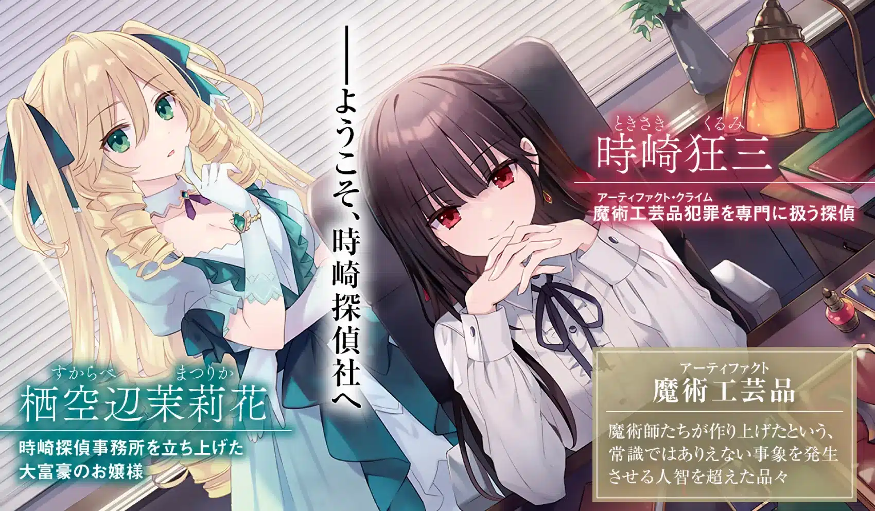 «Cabe señalar que la novela ligera ‘Magic Detective Kurumi Tokisaki’s Case Files‘ estará a cargo de Koushi Tachibana y Tsunako, el autor e ilustrador de la novela ligera original ‘Date a Live‘. En el sitio web oficial de la imprenta Fujimi Fantasia Bunko se ha presentado una ilustración que estará incluida en este volumen. Previamente, se presentó la sinopsis de esta nueva novela ligera de la franquicia Date a Live: