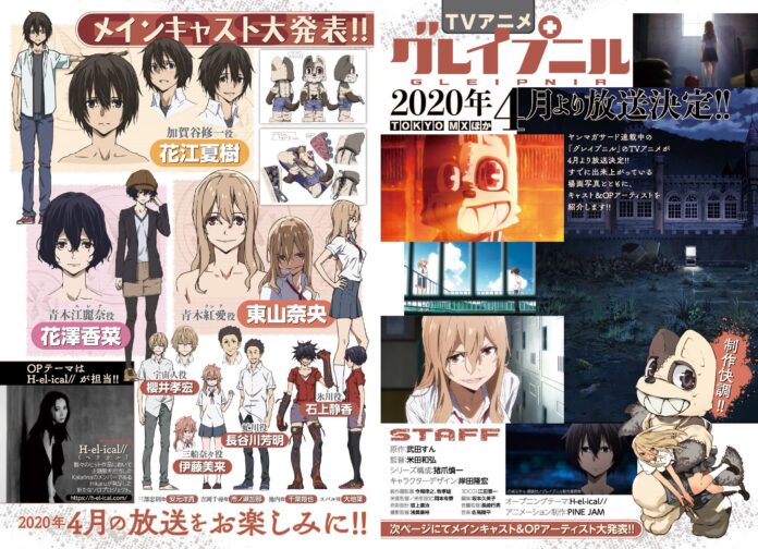 El sitio web oficial de la adaptación al anime del manga Gleipnir reveló 7 miembros del elenco que se unirán al reparto de la serie. El anime se estrenará en abril de 2020.