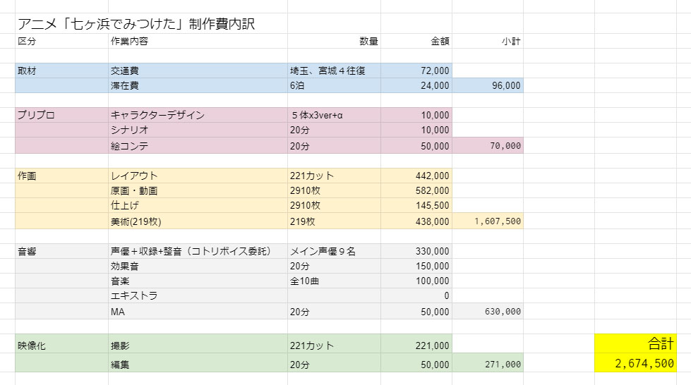 Dado que el coste de producción de la animación japonesa se ha convertido en un tema candente, voy a revelar nuestro coste de producción de la animación. Esto se debe a que tenemos un presupuesto para la reconstrucción, así que quería dejarlo claro. Si es barato o caro, depende de cómo se mire, pero como somos un grupo pequeño, podemos obtener beneficios.