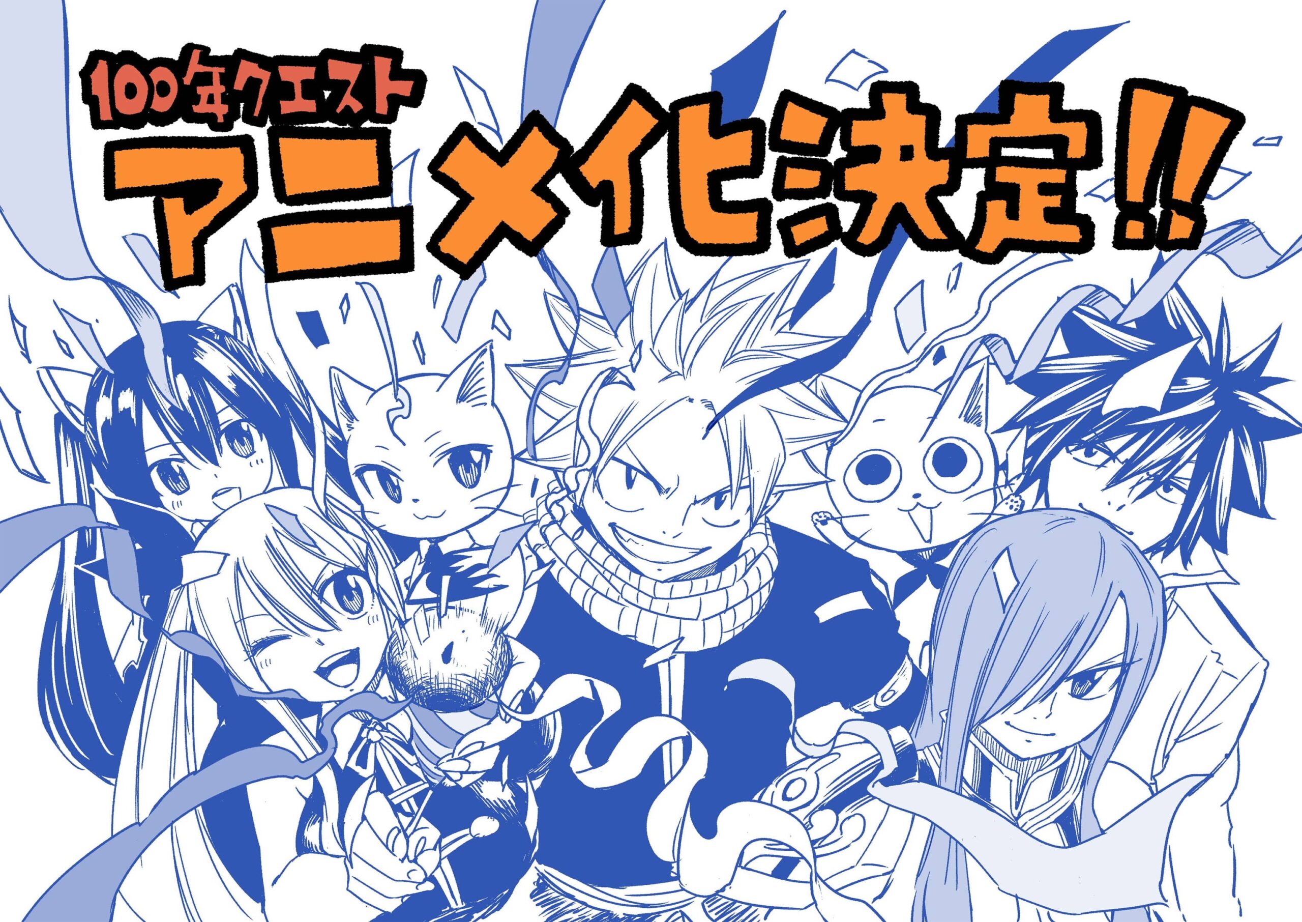 A través del Twitter personal de Atsuo Ueda, el encargado de las ilustraciones del manga «Fairy Tail: 100 Years Quest«, se anunció que la obra tendrá una adaptación al anime. Por el momento no se han dado muchos detalles, pero se espera que con el pasar de los meses se revele nueva información.