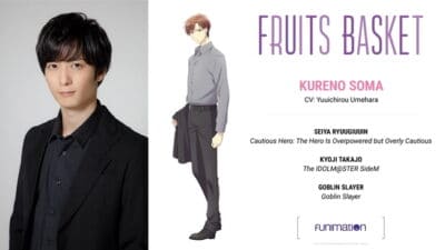 El sitio web oficial del anime Fruits Basket (2° temporada) reveló este viernes que el seiyuu Yuichiro Umehara dará voz al personaje Kureno Soma. El popular seiyuu, ha interpretado personajes como Goblin Slayer (Goblin Slayer), Goro (Darling in the Franxx), Mars (Black Clover), Kyōji Takajō (The Idolmaster SideM), entre otros. Se sabe que su personaje aparecerá en el quinto episodio de la serie anime.