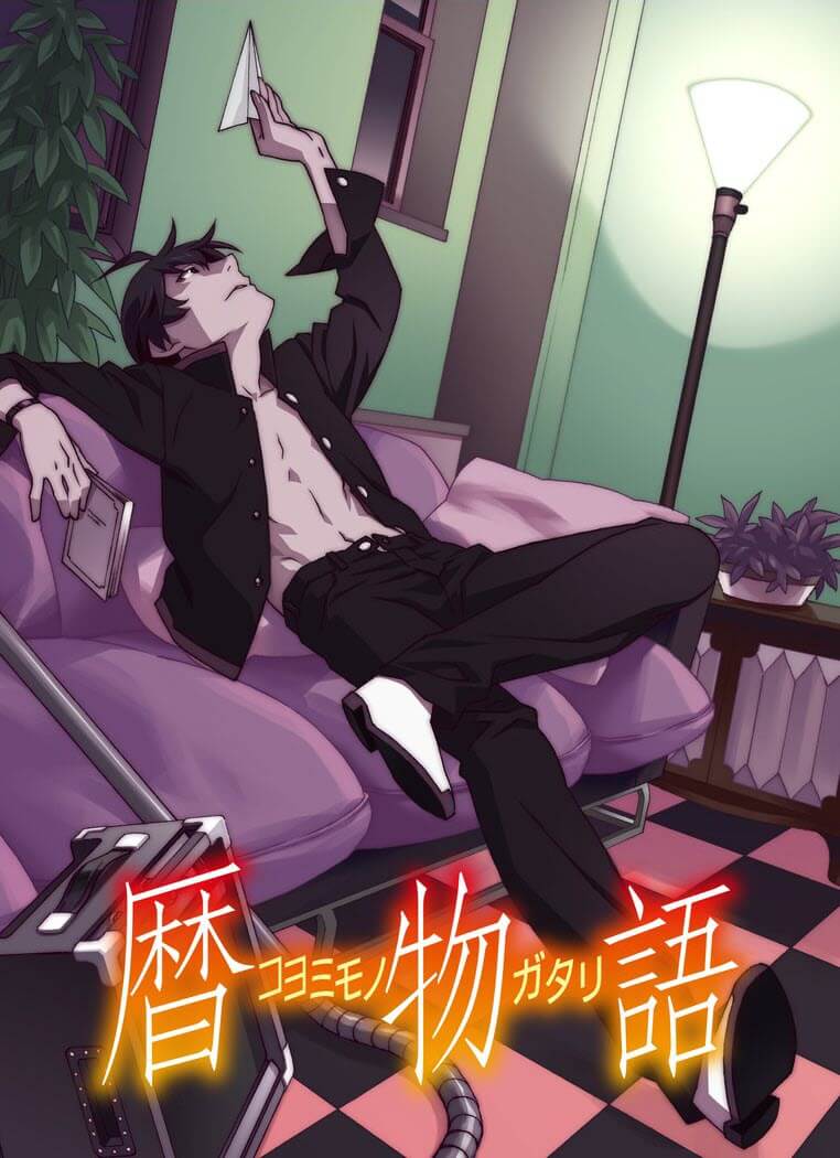 Koyomimonogatari narra12 historias en la vida de Araragi, la cuales transcurren entre algunos arcos principales, habiendo una por cada mes, desde abril del primer año hasta marzo del segundo año.
