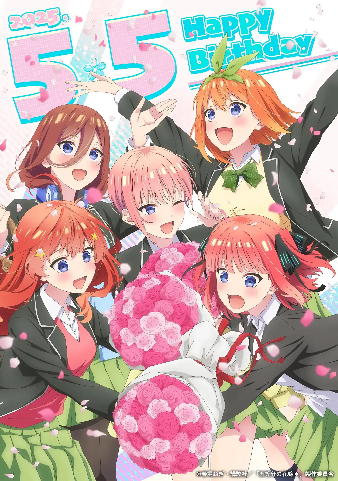 Este 5 de mayo representa una fecha significativa para los seguidores de la franquicia multimedia Go-Toubun no Hanayome (The Quintessential Quintuplets), ya que en esta fecha se celebra el cumpleaños de las quintillizas Ichika, Nino, Miku, Yotsuba e Itsuki Nakano.