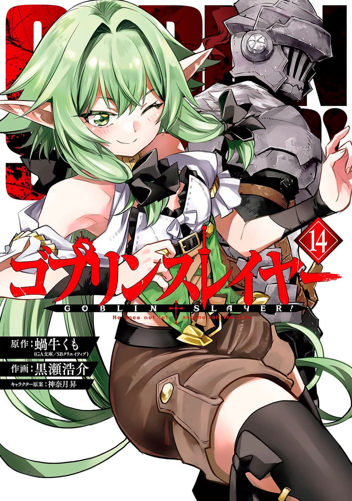 En esta ocasión, la ilustración de portada del volumen recopilatorio #14 del manga Goblin Slayer será protagonizada por los personajes Goblin Slayer y la Elfa Arquera, quien se la puede ver con una actitud coqueta guiñando un ojo. Además, el volumen estará disponible para la adquisición del público a un precio de 730 yenes.
