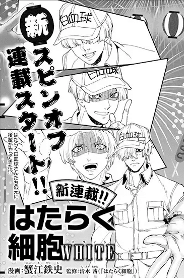 Aunque esta no es la única novedad, ya que también se anunció un nuevo manga spin-off titulado Hataraku Saibou White que comenzará a publicarse en el siguiente número de la revisa y será dibujado por Tetsuji Kanie.