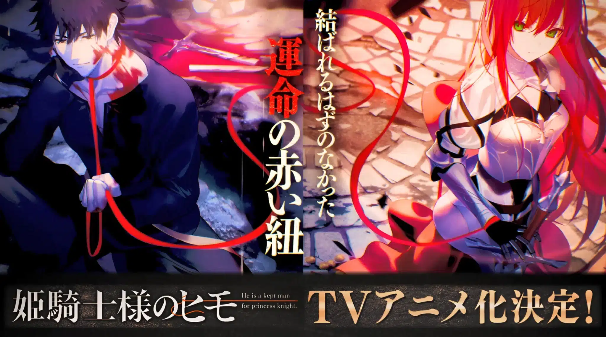 De acuerdo a un reporte realizado por la editorial KADOKAWA, la novela ligera de Tooru Shirogane y Saki Mashima, Himekishi-sama no Himo (He Is a Kept Man for Princess Knight), tendrá una adaptación al anime. Esta noticia estuvo acompañada de un vídeo teaser y una imagen promocional para la serie, el cual será producido por el estudio de animación Blade. Por el momento, no se reveló una posible fecha de estreno.