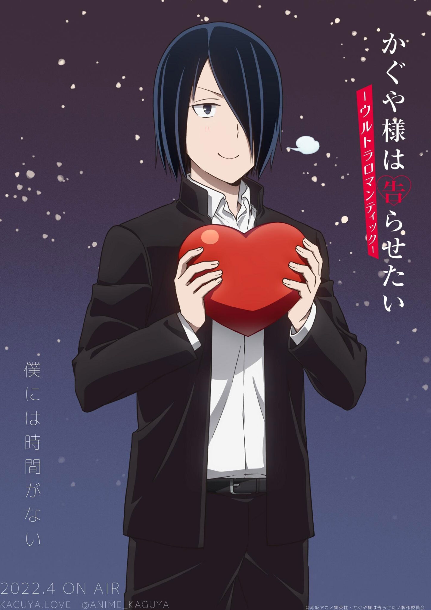 En el sitio web oficial para la adaptación al anime del manga Kaguya-Sama: Love is War publicó una nueva imagen visual protagonizada por Yu Ishigami. En días anteriores, el comité de producción del anime Kaguya-Sama: Love is War estuvo publicando unas imágenes visuales protagonizadas por los personajes Ai Hayasaka y Miko Iino.