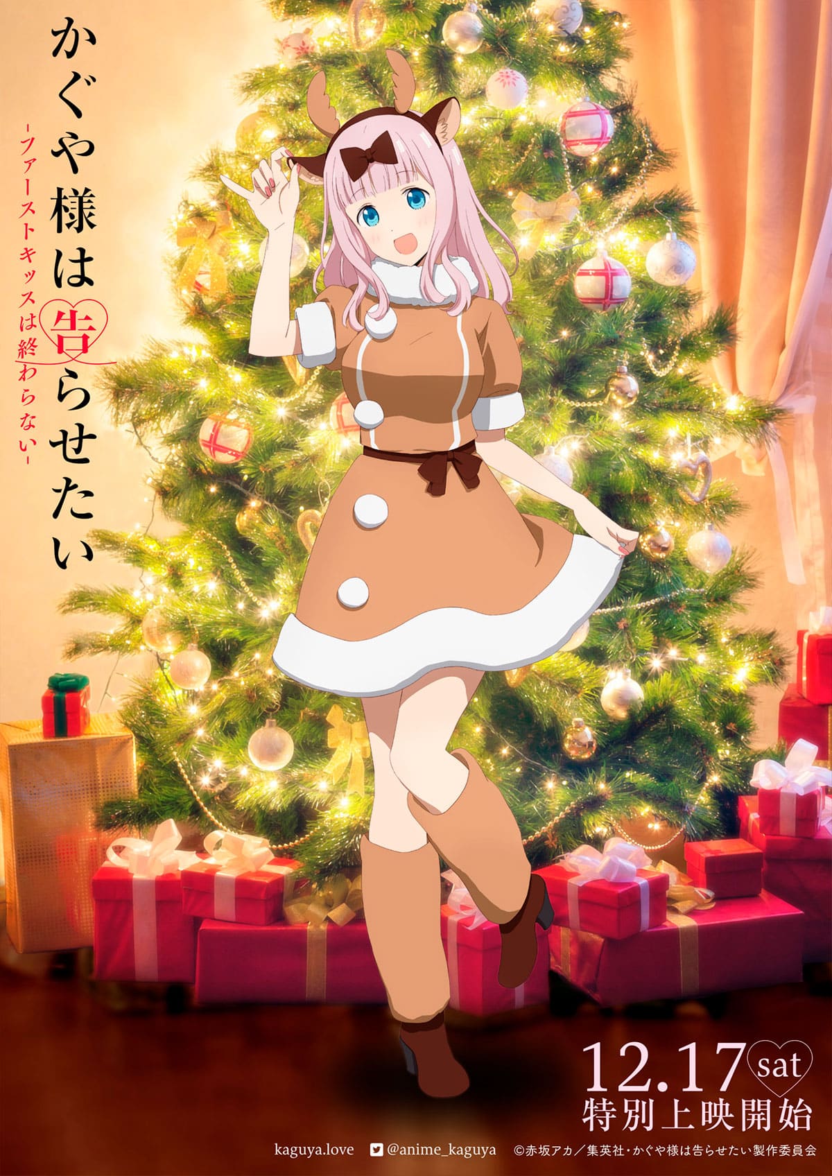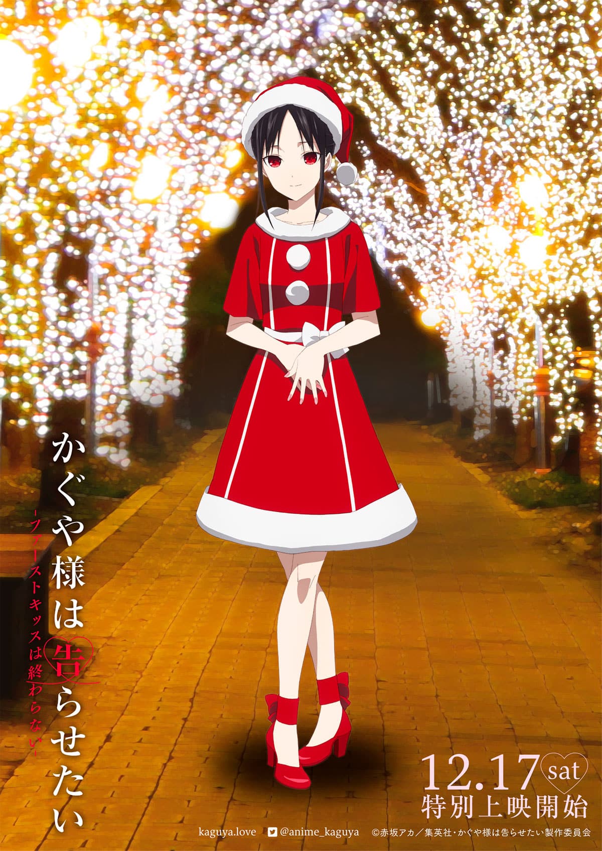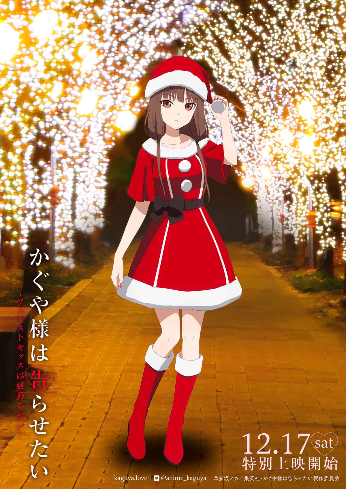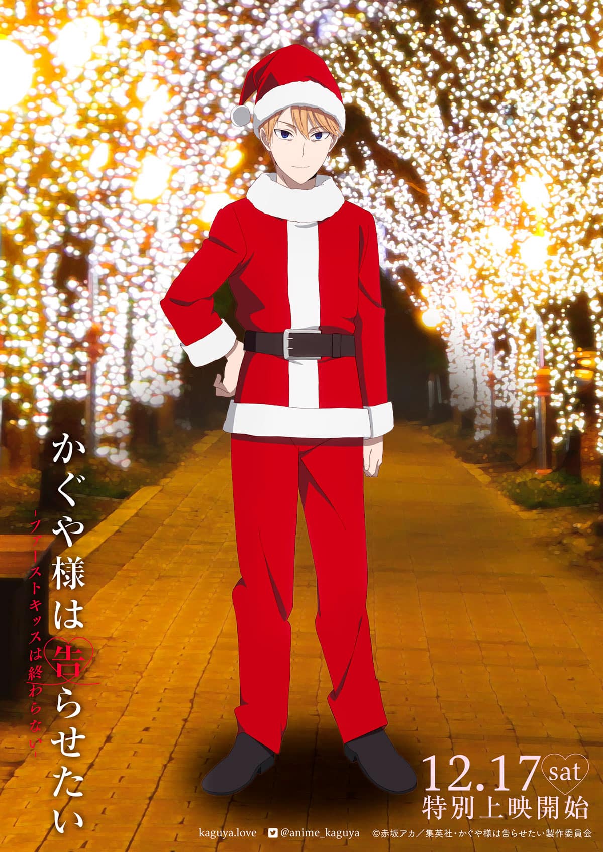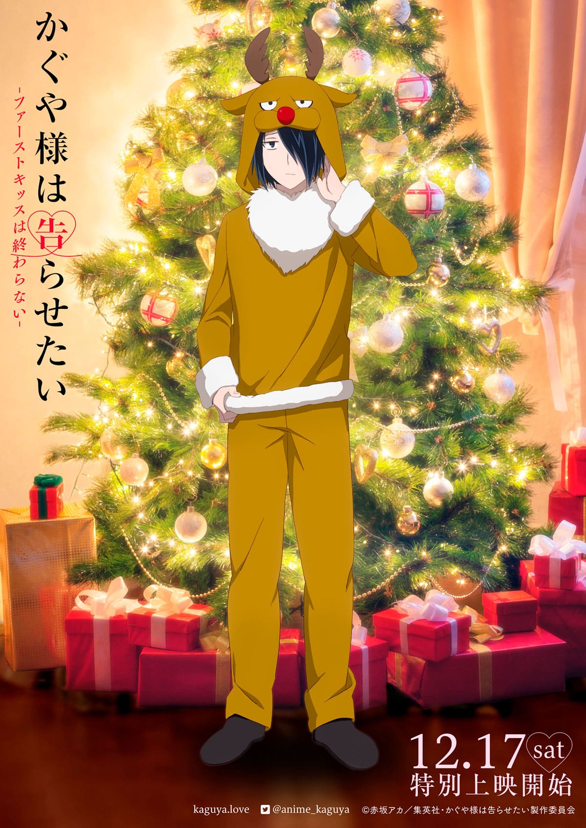 Viendo el panorama de las expectativas que el público tiene con su película, el comité de producción del anime Kaguya-sama: Love is War ha empezado a publicar una serie de imágenes visuales protagonizadas por los personajes Kaguya Shinomiya, Miyuki Shirogane, Chika Fujiwara, Yuu Ishigami y Miko Iino, quienes lucirán unos geniales atuendos navideños para la ocasión.