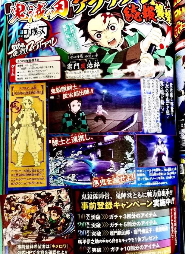En el último número de la revista Weekly Shōnen Jump se revelaron nuevas imágenes del videojuego Kimetsu no Yaiba – Keppuu Kengeki Royal (Demon Slayer: Blood-Stench Blade Royale) que está en desarrollo para smartphones.