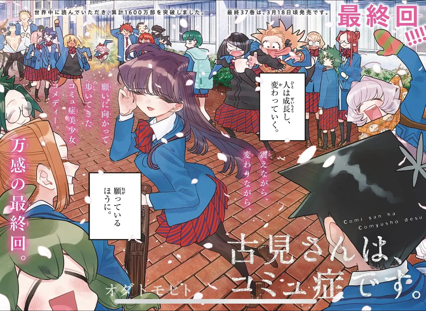 Han pasado varias semanas desde que se anunciรณ que el manga Komi-san wa, Komyushou desu estaba prรณximo a finalizar su publicaciรณn en la revista Weekly Shonen Sunday, y el tan esperado dรญa para los fanรกticos finalmente ha llegado. Para alegrรญa de los seguidores, el รบltimo capรญtulo del manga Komi-san wa, Komyushou desu en la revista Weekly Shonen Sunday vino acompaรฑado de una increรญble ilustraciรณn.
