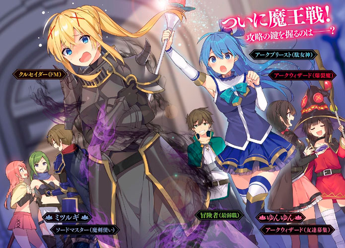 El usuario de Twitter @RanobeSugoi compartió las ilustraciones del volumen 17 y final de la novela ligera de Kono Subarashii Sekai ni Shukufuku wo (Konosuba).