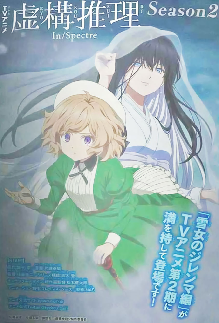 Como algunos sabrán, la segunda temporada de la adaptación al anime de la novela ligera Kyokou Suiri (In/Spectre) está programada para estrenarse en el transcurso de este año, sin embargo, por el momento no hay ningún comunicado oficial sobre en que mes se podría estrenar esta nueva temporada. Sin embargo, es aquí en donde los insiders entran en acción.