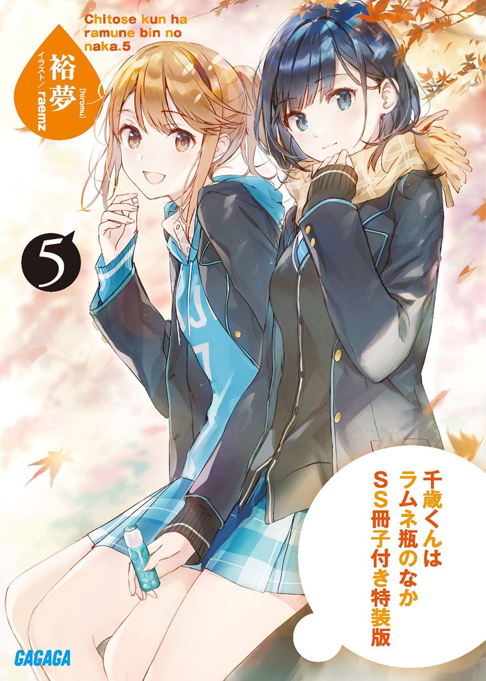 A través de la cuenta de Twitter personal de Hiromu, autor de la novela ligera Chitose-kun wa Ramune Bin no Naka, se han revelado las portadas oficiales de la edición estándar y especial del quinto volumen de la obra. También se anuncio que este volumen saldrá a la venta en Japón el próximo 20 de abril del 2021.