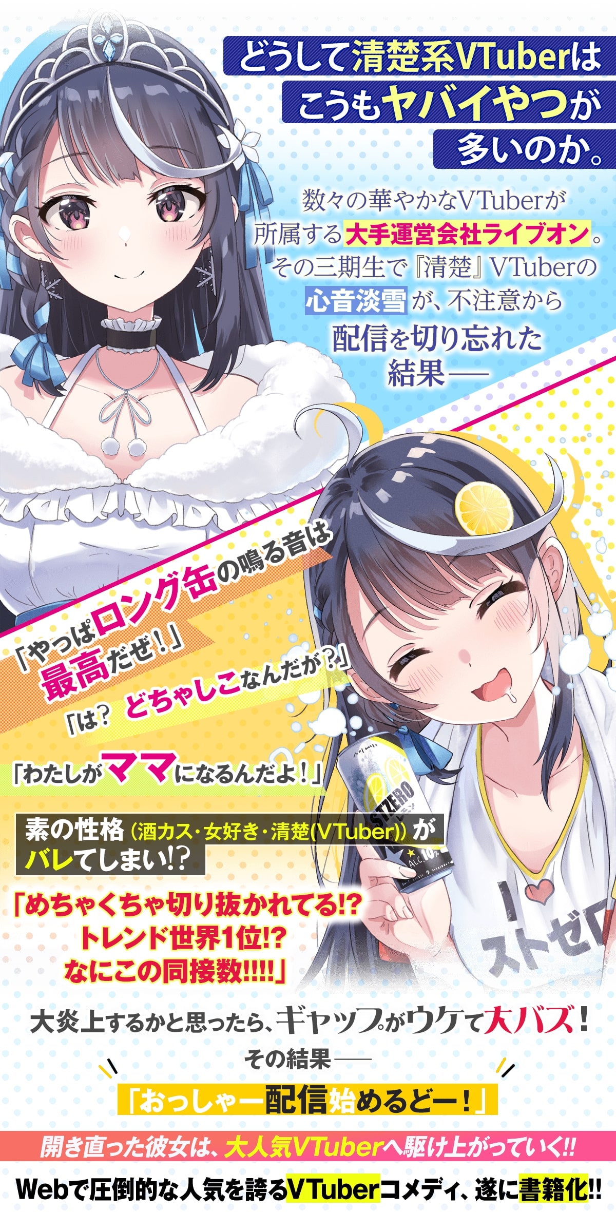 Live-on, es una importante empresa a la que pertenecen muchos magníficos VTubers. Como resultado del descuido de la Vtuber estudiante de tercer año, sin darse cuenta se olvidó de interrumpir la transmisión: «¡El sonido de una lata larga es el mejor!», «¡Voy a ser una mamá!» ¿¡La verdadera personalidad bebedora, amante, y ordenada se ha revelado!?