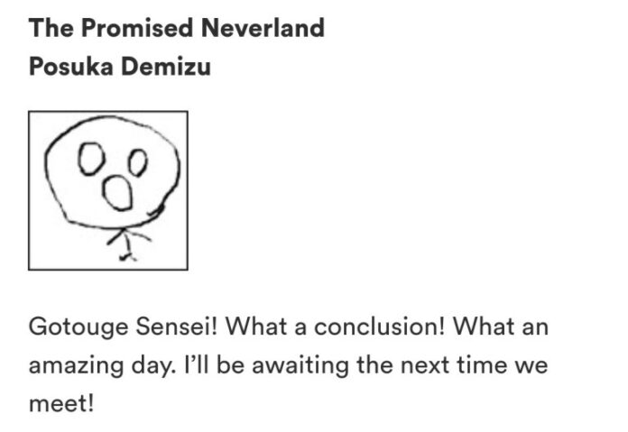Posuka Demizu (Yakusoku no Neverland) comento lo siguiente: