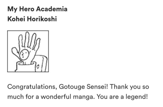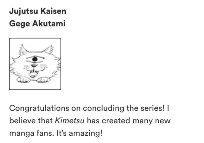 Pero este no fue el único mensaje, diferentes mangakas también dejaron sus comentarios de felicitaciones a la mangaka por el final de su manga.