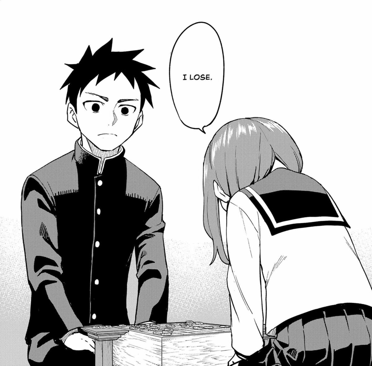 Entonces le Urushi le dice en voz baja que si la llama por su nombre le dará un beso, pero Ayumu quien parece que no escucho, le dice que llegaron a su destino, una caseta del parque donde jugaran shogi.