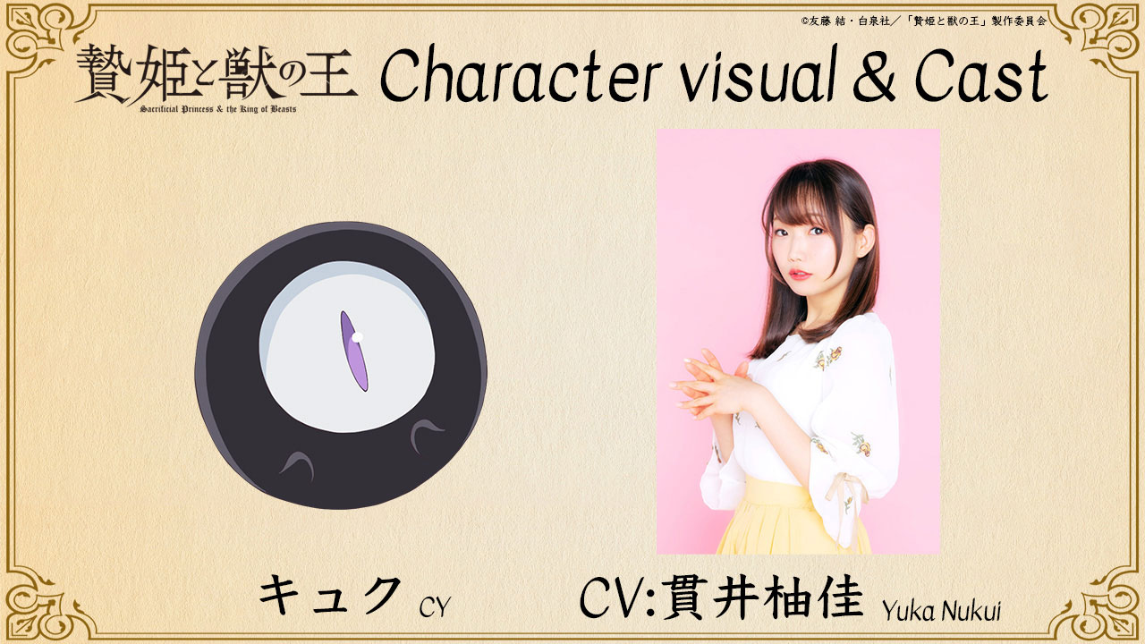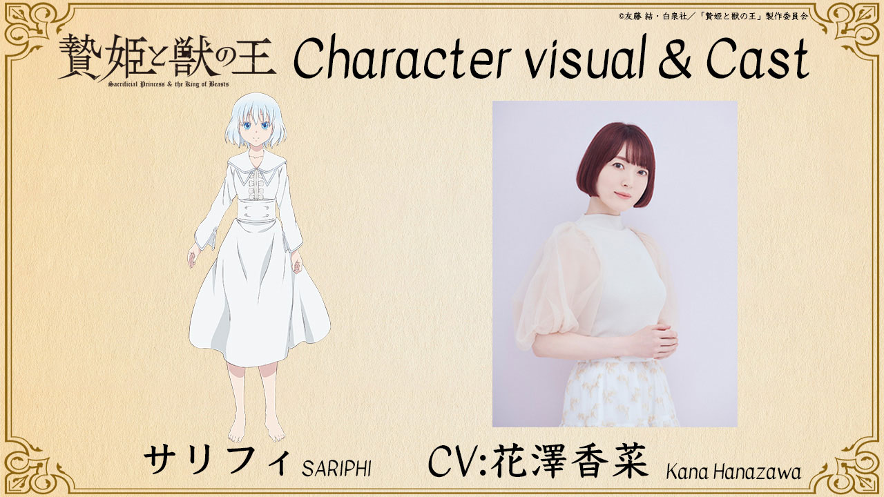 En el sitio web oficial para la adaptación al anime del manga Niehime to Kemono no Ou (Sacrificial Princess & the King of Beasts) se publicó el primer vídeo promocional para la serie y se confirmó que el estudio de animación J.C. Staff se encargará de la producción del anime. Cabe señalar que la serie está programada para estrenarse en Japón en el transcurso del año 2023.